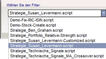 Angezeigt werden immer alle verfügbaren Strategien, die auch physisch als Dateien im \Daten\Scripts-Verzeichnis auffindbar sind über die *.Script-Dateien.